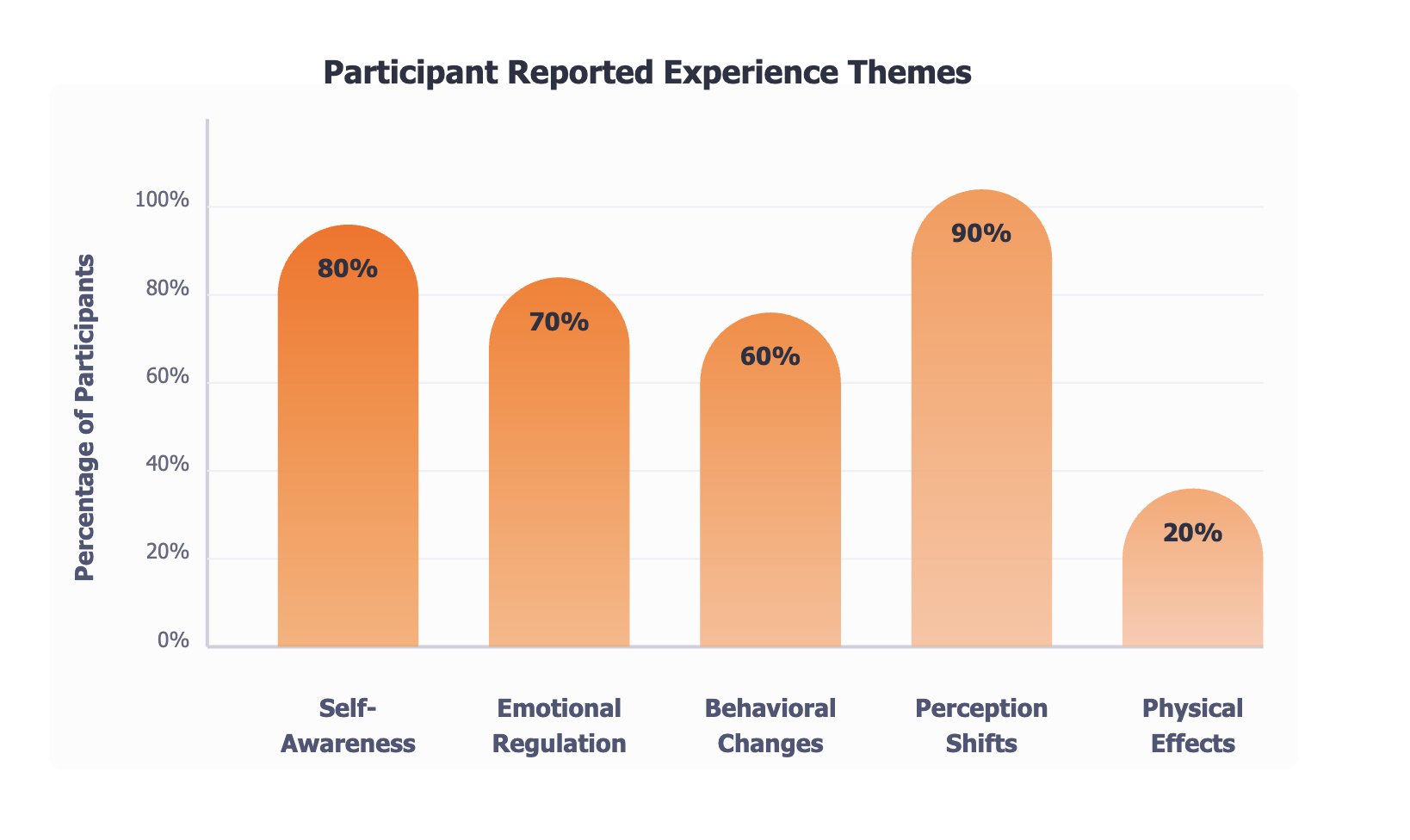 Emotional Regulation (70% of participants) - Reported feeling "calmer," "more centered," or "in control" of emotions